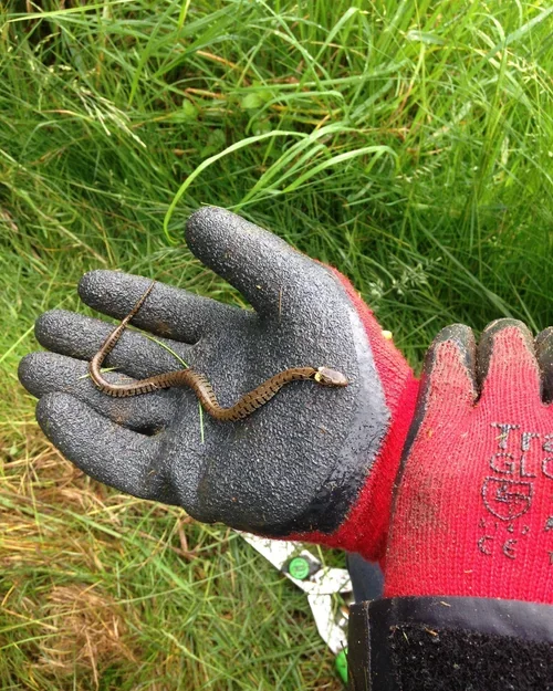The 2025 survey results showed that, for the second consecutive year, evidence was found of successful breeding in our habitat piles, a great triumph for the team. The survey showed an increase in overall population size whichis a promising outlook for the future of the species, as well as one of the largest snakes recorded in the history of the monitoring project, at 120cm long! The highest number of sightings were recorded in areas of dense semi-natural vegetation that were close to water, reflecting the snake’s preference for riparian habitats and a lack of human disturbance.